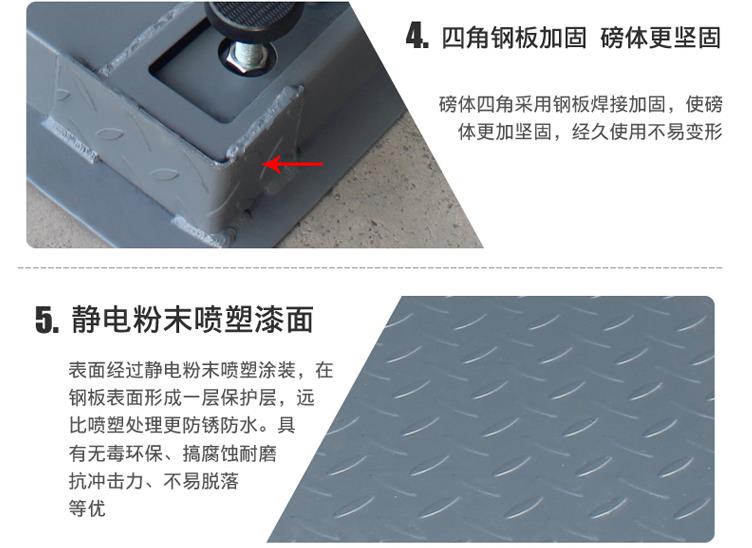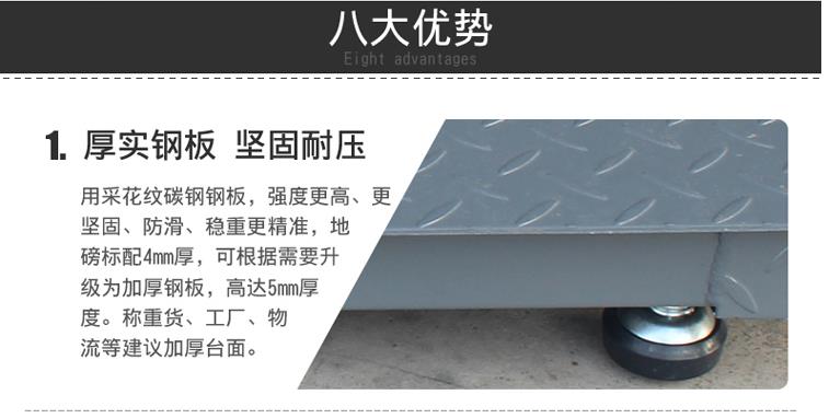 2、地磅秤材質(zhì)為:碳鋼,防滑咬花型臺面設(shè)計;